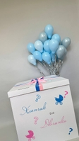 Найбільш хвилюючий спосіб дізнатися стать майбутньої дитини! Велика біла коробка з індивідуальним дизайном та бантом приховує в собі головну таємницю. У момент відкриття з коробки ефектно вилітають 20 міні-кульок відповідного кольору (блакитні або рожеві), створюючи ідеальний момент для фото та відео.Склад набору:- Велика біла коробка (70х70х70 см): декорована тематичними написами «Хлопчик чи Дівчинка?» та великим атласним бантом.