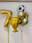 Фольгована цифра (80 см): велика золота цифра, що символізує вік іменинника.Фольгована фігура «Кубок»: об’ємний золотий кубок із написом «Champion», що є головним символом перемоги.