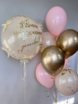 Набір кристал кулька з написом ( 55см , напис можна змінювати ) та звʼязка кульок ( хром кульки, ніжно рожеві та бежеві в техніці дабл стаф )