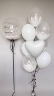 Набір кулька бабл з пірʼям та написом ( напис можна змінювати ), звʼязка кульок 10шт (білі пастельні ,сердечко фольговане, агати ).Створіть незабутню атмосферу свята за допомогою цього витонченого сету в білосніжних тонах. Поєднання прозорих текстур, легкості пір'я та класичного білого кольору робить цей набір ідеальним подарунком для особливих моментів.