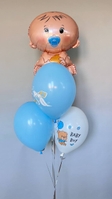 Милий та компактний набір, створений спеціально для зустрічі малюка з пологового будинку або святкування першої важливої дати. Композиція виконана у класичних блакитних та білих кольорах, що створює атмосферу ніжності.Склад набору:- Велика фольгована фігура «Пупс»: чарівний малюк із блакитною пустушкою.