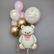 Ніжний та вишуканий подарунковий набір гелієвих кульок, створений спеціально для найважливіших подій: виписки з пологового будинку, першого дня народження або хрестин. Поєднання великої фігури ведмедика, сяючого золота та кришталево прозорої кульки з вашим індивідуальним текстом робить цю композицію ідеальним центром для святкової фотозони.Склад набору:- Велика фольгована фігура «Ведмедик»: білий ведмедик із рожевим бантом.